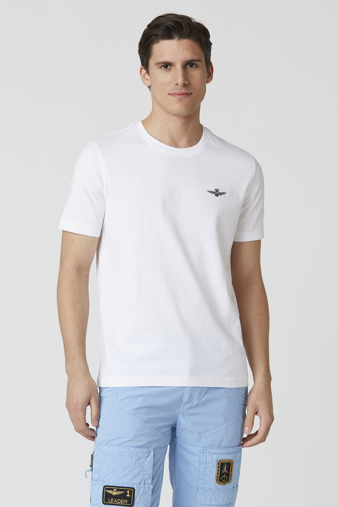 Toto tričko s krátkým rukávem, vyrobené z bavlněného žerzeje, nabízí ležérní jednoduchost a je dostupné v klasické námořnické modré a bílé. Vyznačuje se charakteristickým emblémem orla a dodává základnímu základu šatníku punc autenticity.