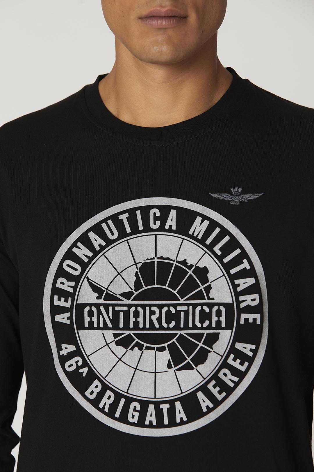 Dokonalá kombinace pohodlného střihu a detailů inspirovaných vojenským stylem dělá toto tričko s dlouhými rukávy jedinečným. Uprostřed je reflexní potisk připomínající antarktickou expedici, které se zúčastnila 46. letecká brigáda, levý rukáv je obohacen odnímatelnou stužkou "Remove before flight".