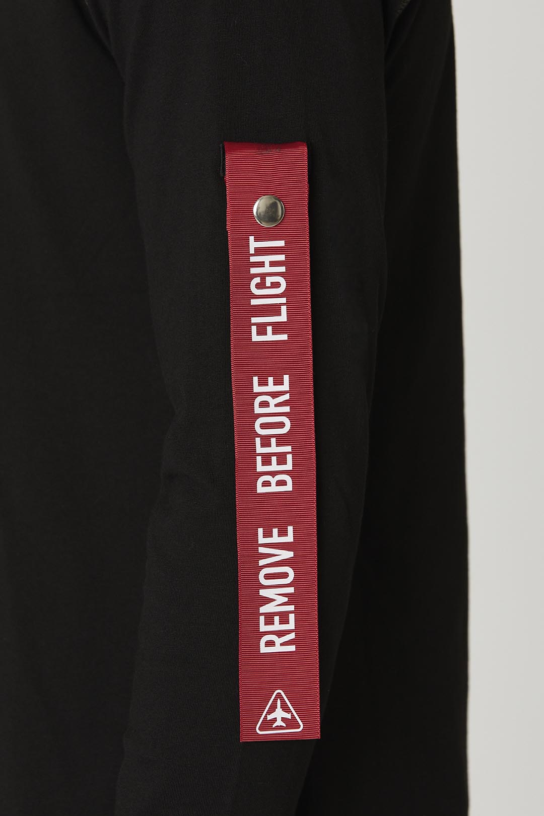 - Stužka "Remove before flight" na levém rukávu