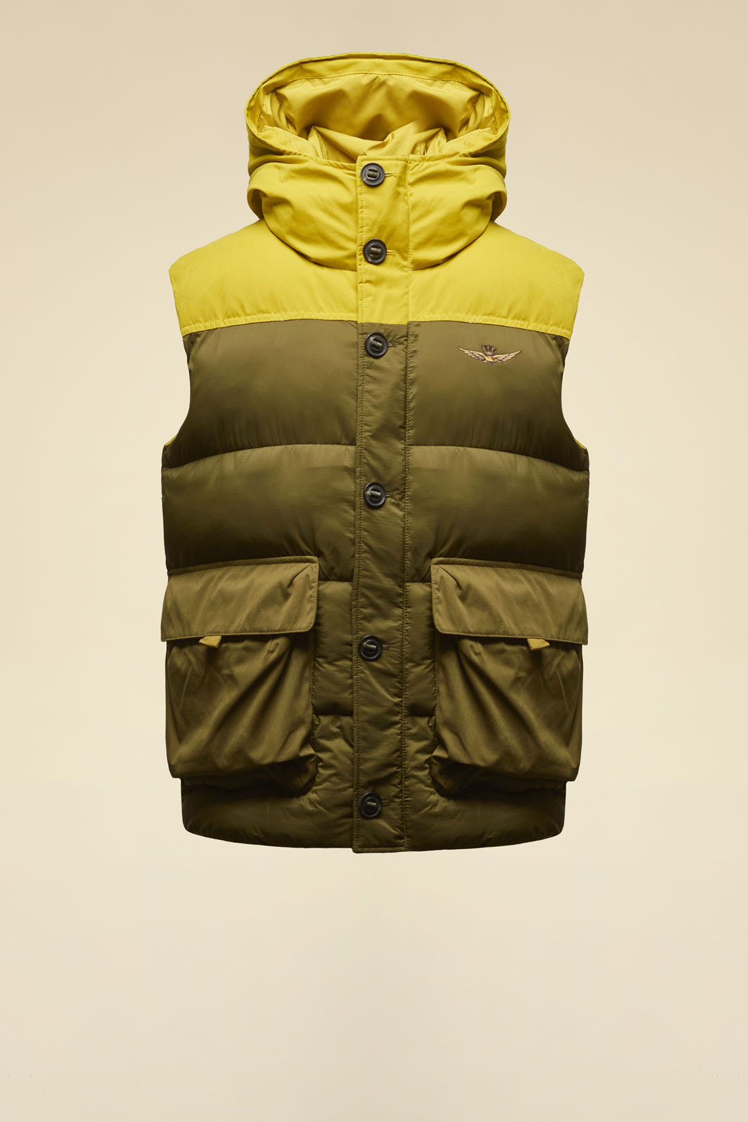 Tato městská vycpaná vesta spojuje praktičnost s moderním stylem a přináší do vašeho šatníku šmrnc. Její prostorný střih poskytuje komfort a teplo, zatímco dvoubarevná ripstopová nylonová tkanina v kontrastní vojenské zelené a jasně žluté barvě zaručuje výrazný a odvážný vzhled. Tato vesta je ideální pro ty, kteří chtějí vyniknout a zároveň si udržet funkčnost a pohodlí.