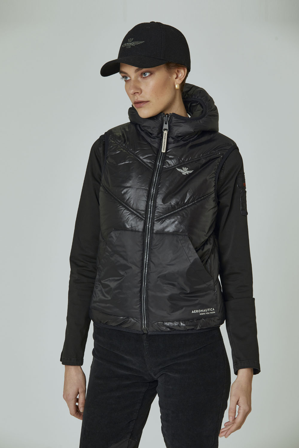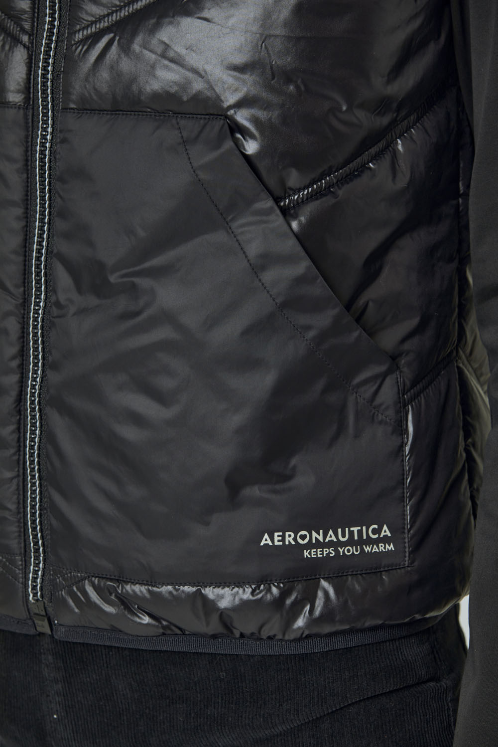 - Nylonová strana s reflexním potiskem "Aeronautica tě zahřeje" na přední kapse
